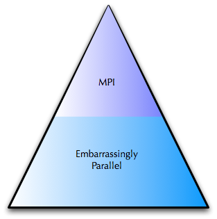 In talking to the grid community I learned that there are effectively two key types of problem that are solved on large scale computing clusters: MPI (Message Passing Interface) and ‘embarrassingly parallel’ problems. I’m using terms I heard at the conference, but will use MPI and EPP (embarrassingly parallel problem) so that I can shorthand throughout the rest of this article.
