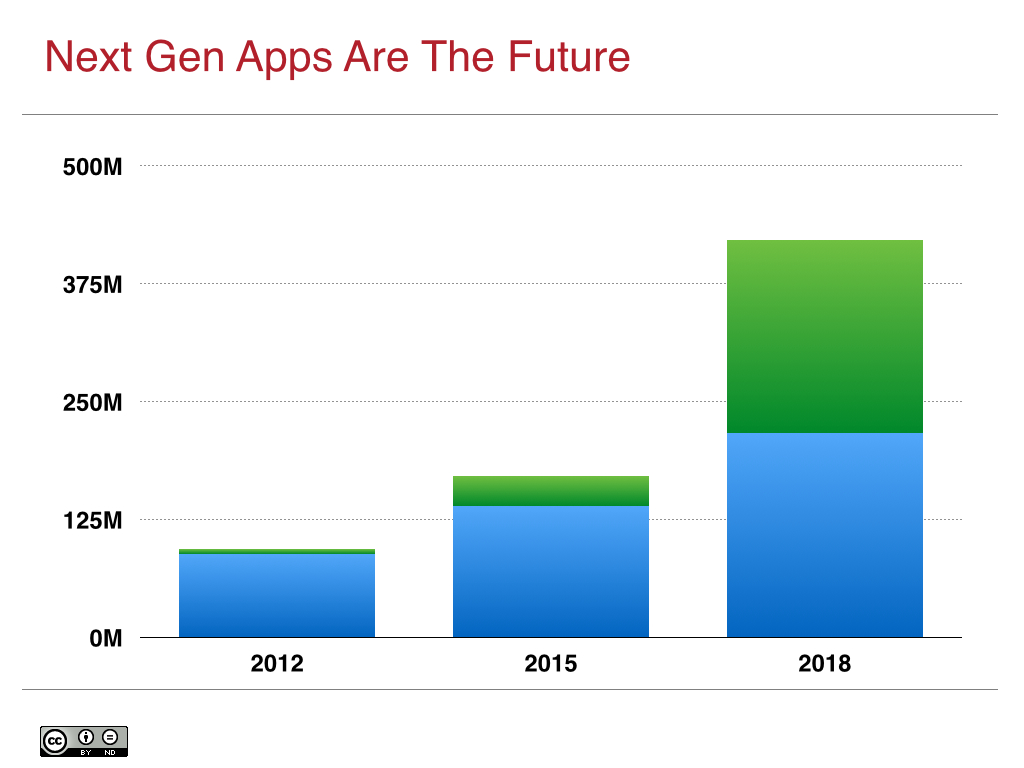 At its current rate of growth, next generation cloud applications will equal the size of all existing applications by 2018:
